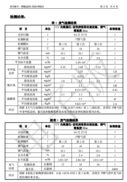 關(guān)于2022年溫州瑞境環(huán)保科技有限公司環(huán)境檢測報告的公示