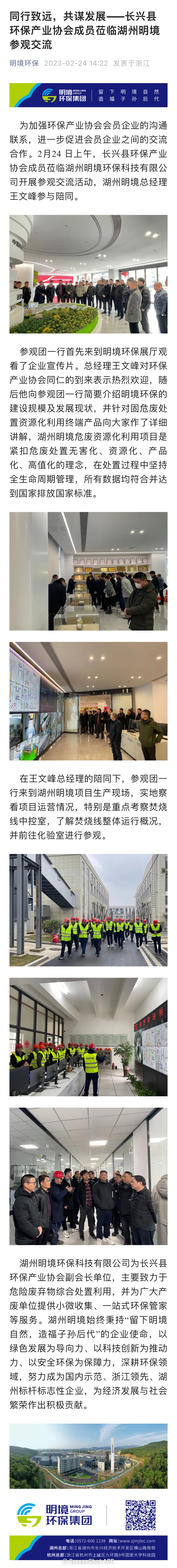 長興縣環(huán)保產(chǎn)業(yè)協(xié)會成員蒞臨湖州明境參觀交流